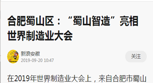 新浪安徽--合肥蜀山區:“蜀山智造”亮相世界制造業大會